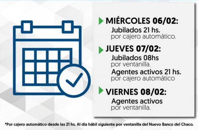 Informó que este miércoles 6, a partir de 21 podrán cobrar los jubilados y pensionados por cajero automático y al día siguiente por ventanilla en la sucursal del Nuevo Banco del Chaco.