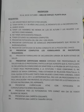 Entre los requisitos básicos para la inscripción, que es para ambos sexos y deben presentarse en el área Empleo del municipio de Barranqueras, se destaca: