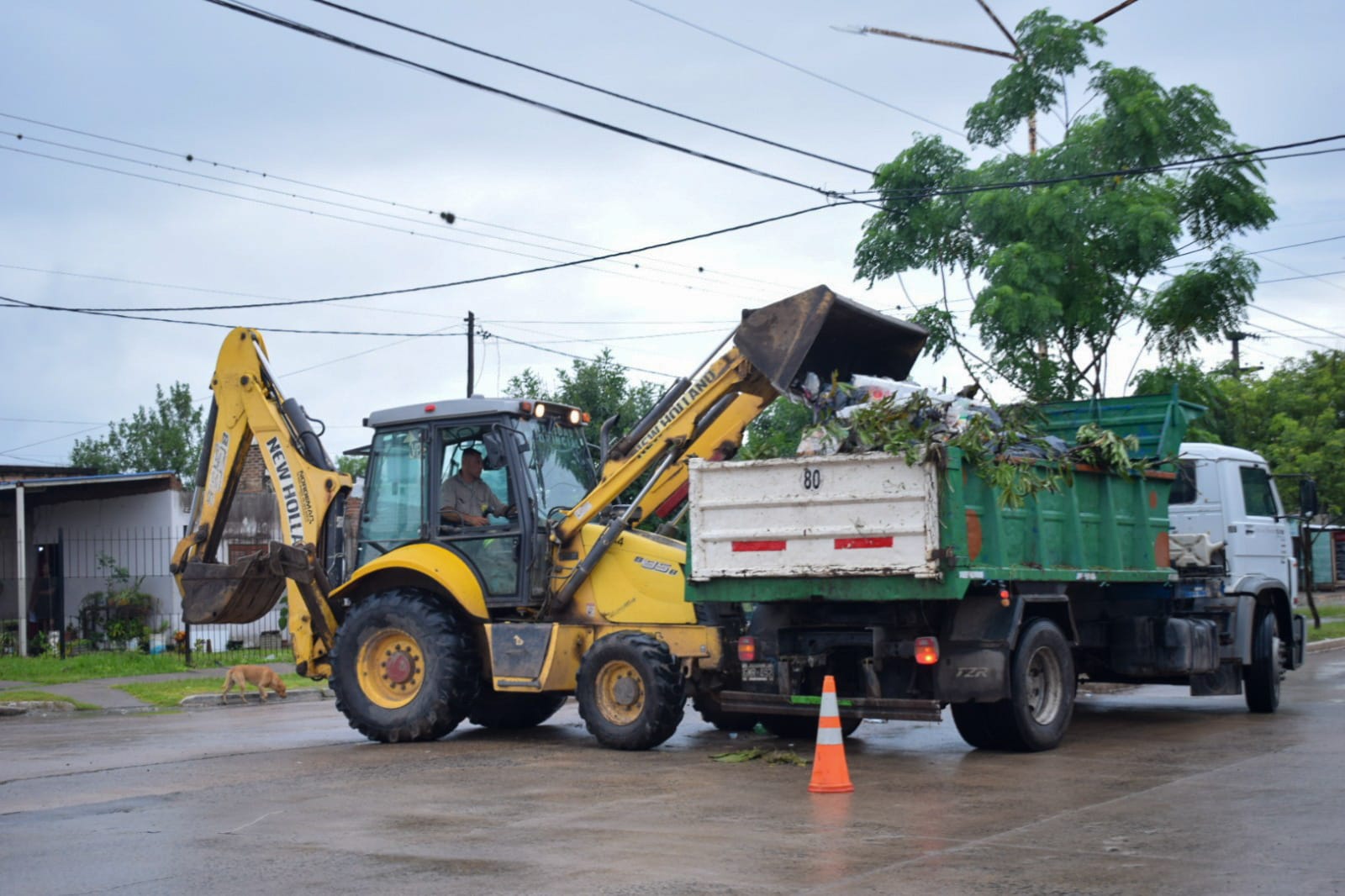 A pesar del temporal que afectó la ciudad desde la noche del miércoles hasta la madrugada de este jueves, y que se puede extender al resto del día, equipos de las distintas áreas de Servicios Públicos llevaron adelante trabajos de barrido y recolección de todo tipo de desechos acumulados, afectando a personal y equipos viales como ser camiones y retroexcavadoras.