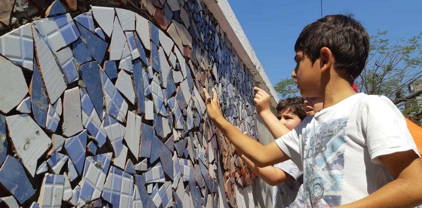Alumnos y alumnas del jardín y de la escuela UEP N° 54 de artes realizaron un mural de mosaiquismo en el muro perimetral de Sameep junto...